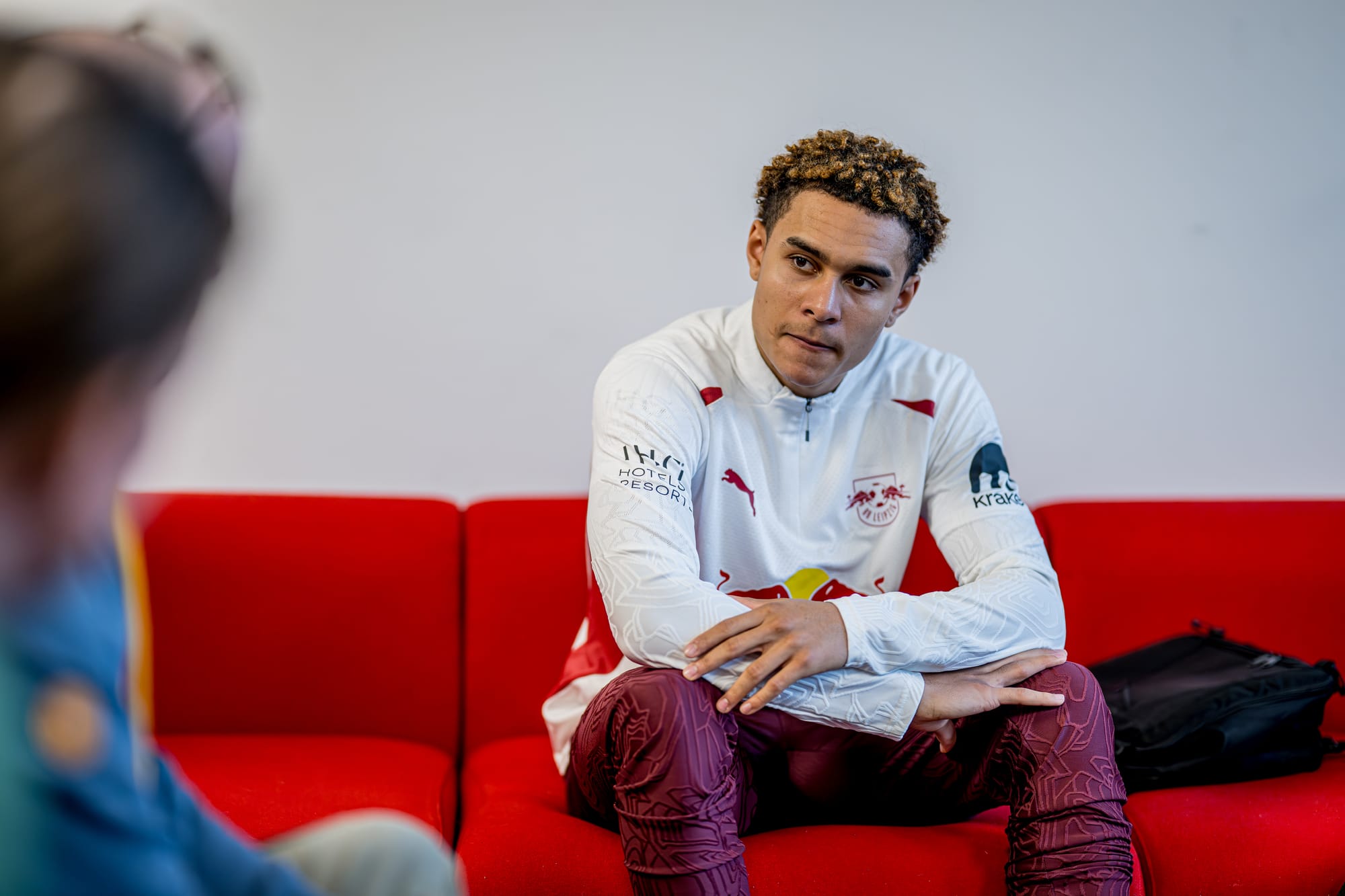 It’s been more than a year since that moment. Today, on a grey March morning in a compound tucked within a park in Cottaweg, Nusa sits across from me on a bright red couch. He's wearing sliders, and into his socks he's tucked the training gear of his new employers: RB Leipzig.