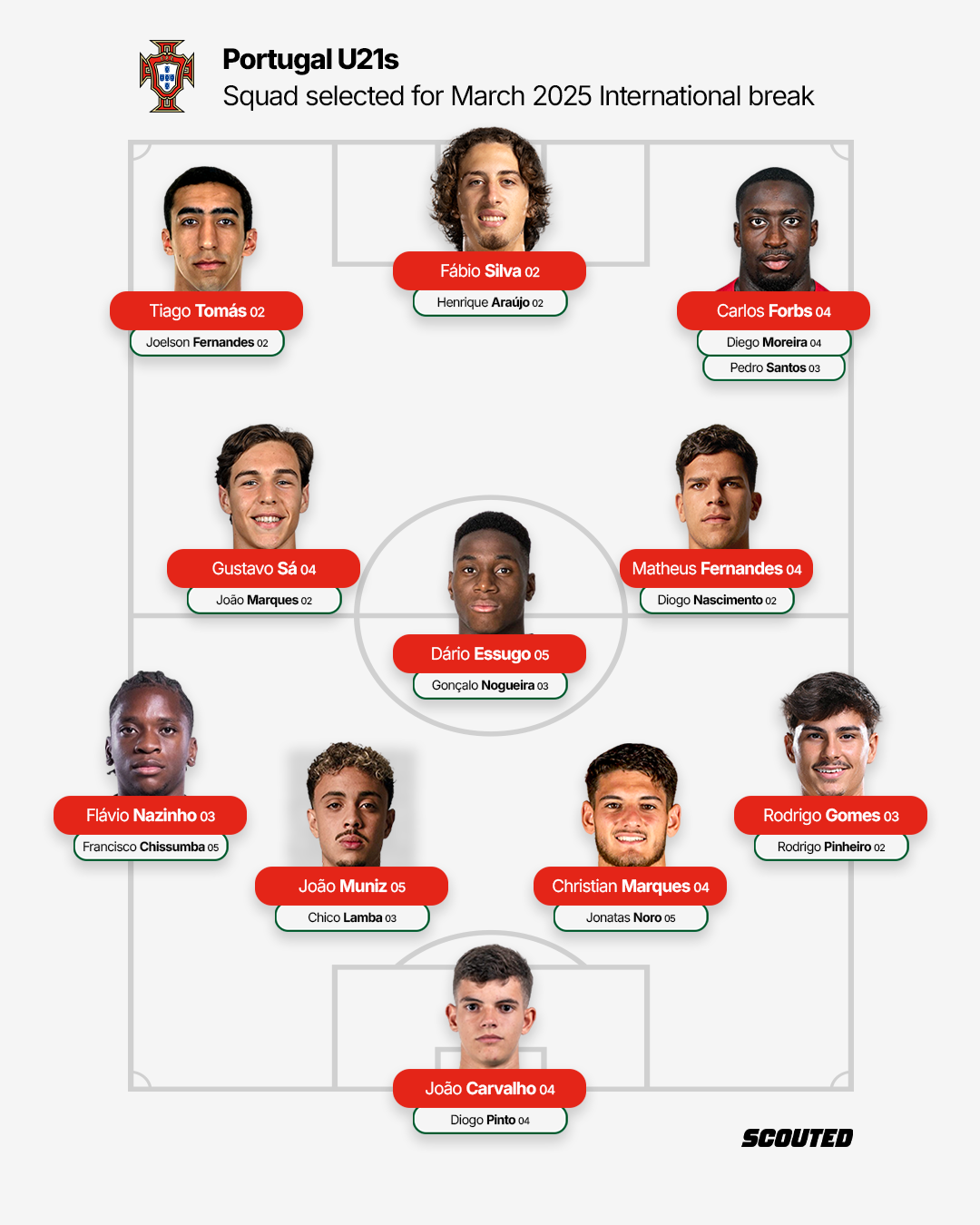As for Portugal, I am personally not quite as familiar with as many names but they are always super strong at this level. Tune in to catch a glimpse of the latest BlueCo asset, Dário Essugo (2005), alongside Famalicão’s Gustavo Sá (2004) and Southampton’s Mateus Fernandes (2004) in midfield. Up top, somehow Fábio Silva (2002) is still young enough to lead the line.