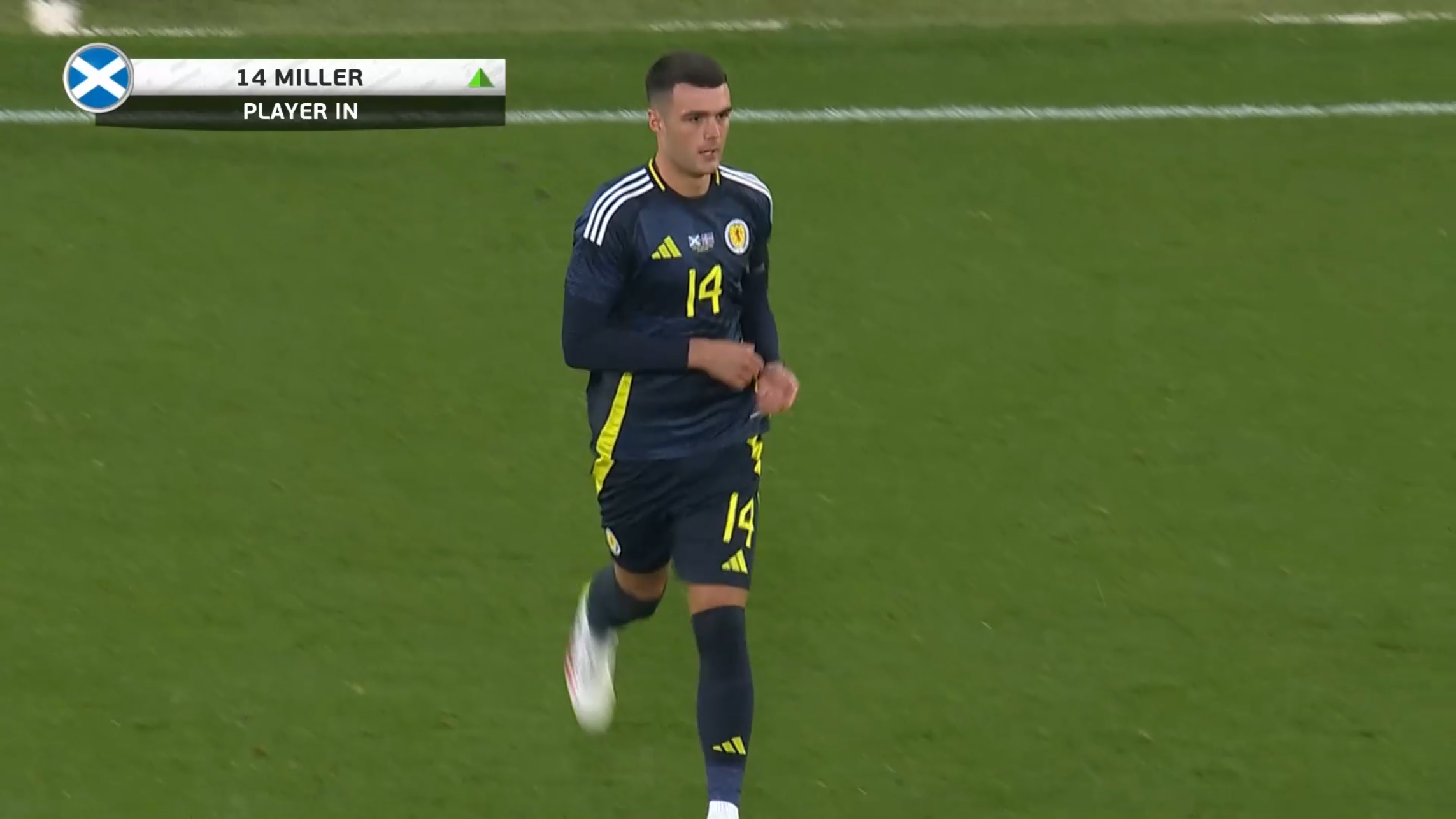 “This is what the fans wanted to see, a debut for Lennon Miller” is the call from the same commentators as he jogs on to a hearty Hampden cheer.