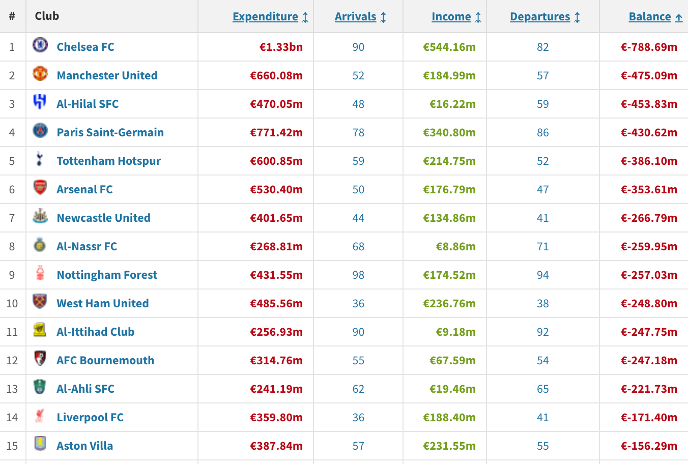 Since BlueCo acquired the club, Chelsea have spent €1.33bn on incoming transfers, as per Transfermarkt. When considering the €544m in player sales, that is still an eye-watering, world-leading net spend of €788.69m.