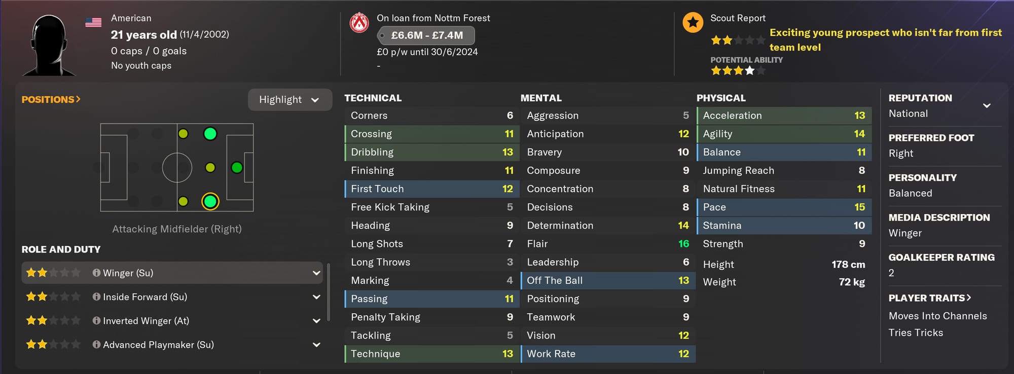 I’m still hamstrung by my boss’ historical disregard for financial sustainability, so I hardly bother to look at the transfer market. Instead, I notice a report on a on youngster who’s currently out on loan.