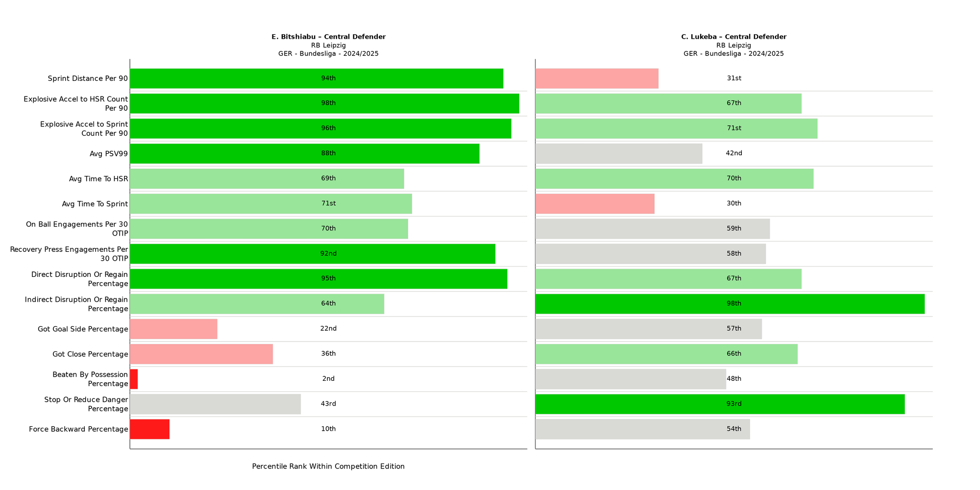 Lukeba is hyper-efficient at Stopping or Reducing Danger when necessary, as well as indirectly Disrupting and Regaining. By contrast, Bitshiabu is a super-effective recovery defender due to his elite speed and efficiency at directly Disrupting and Regaining.