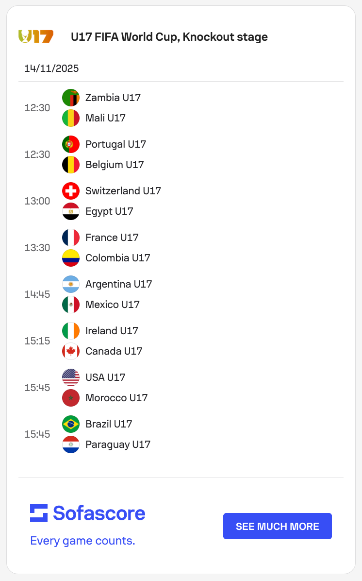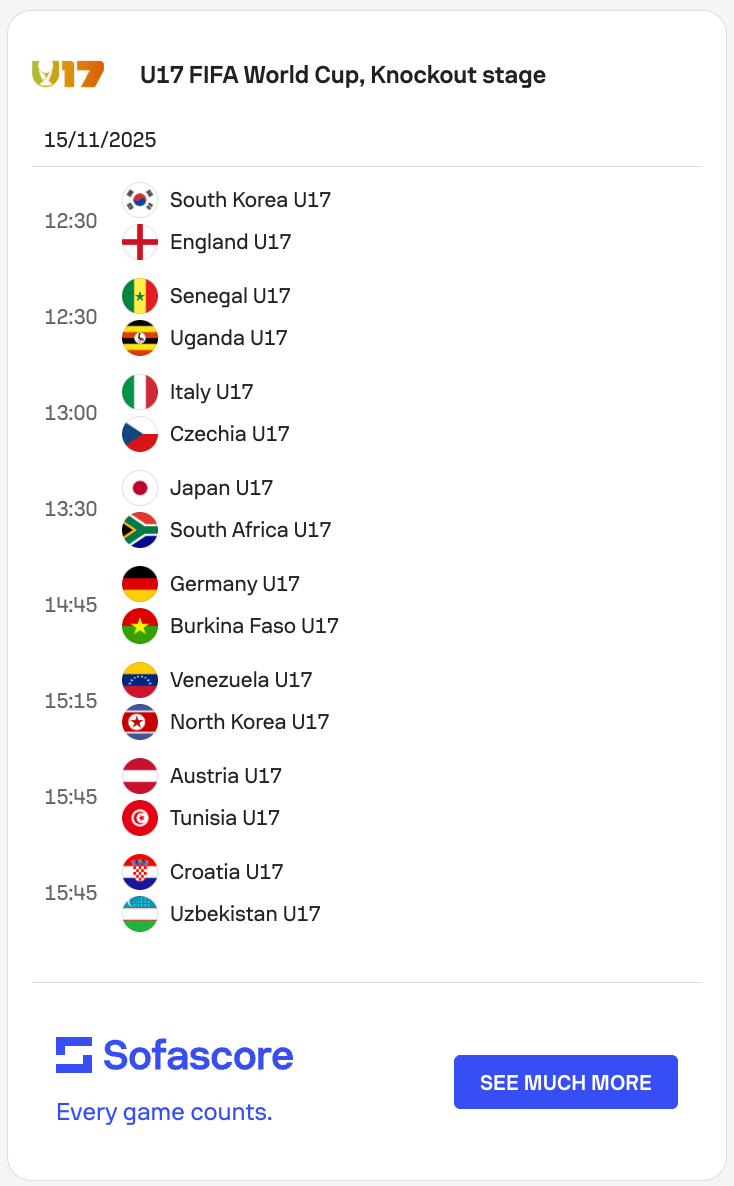 The 2025 U-17 World Cup knockout stages begin today. The tournament is almost-impossible to keep track of. The Round of 32 - that’s sixteen fixtures - will be played over the next two days before every Round of 16 match takes place on Tuesday 18 November.