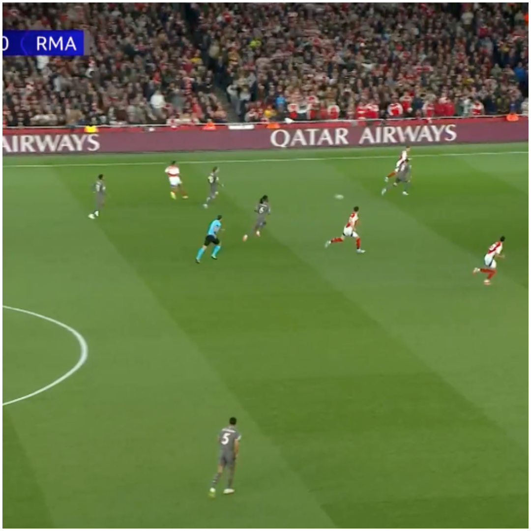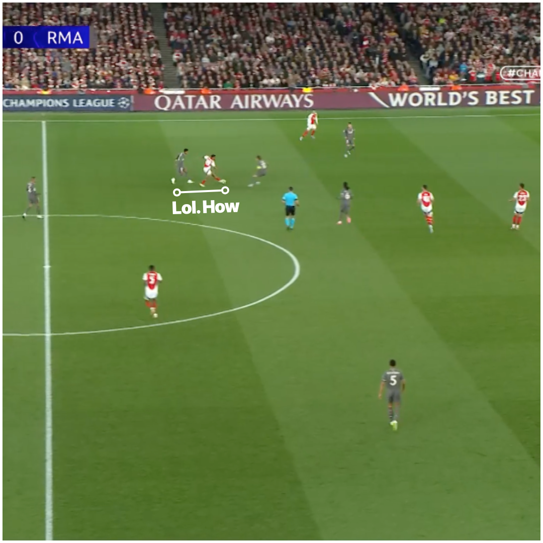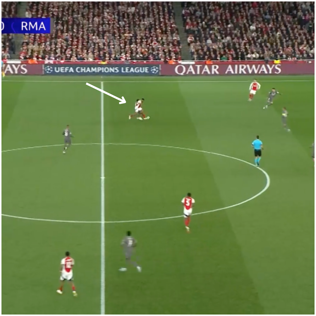 - …and pops a pass off to Martinelli that doesn’t quite come off. Almost magic.