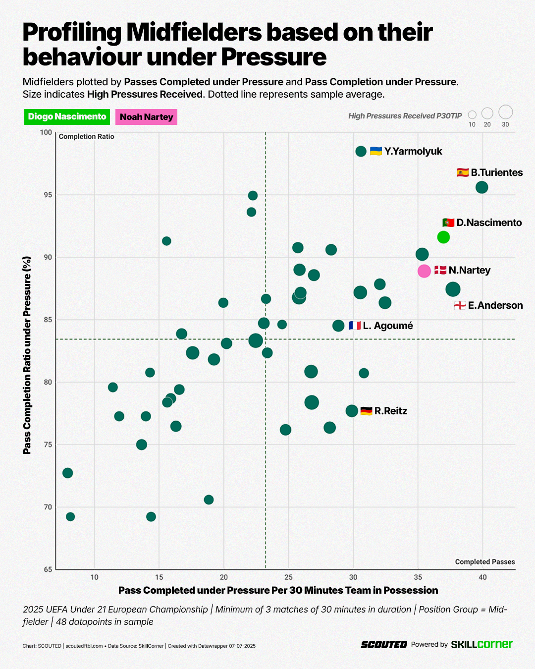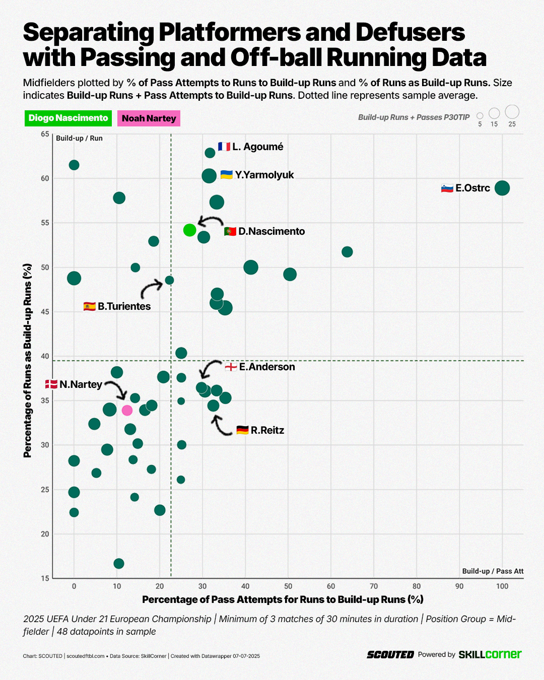 By watching and then analysing both Nascimento and Nartey at the U-21 EURO, we have a clearer understanding of what should separate these two Midfield Archetypes.