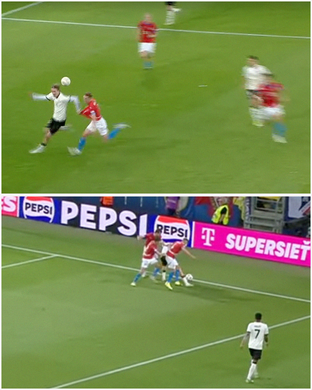 “Instead of bouncing the ball back to the centre-back or perhaps spinning it out to the full-back, Nartey takes it upon himself to add some impetus to Denmark’s build up. His turn-and-burst took a couple of defenders out of the game and created a situation where he could slip in a team-mate to drive directly at the Ukrainian defence.”