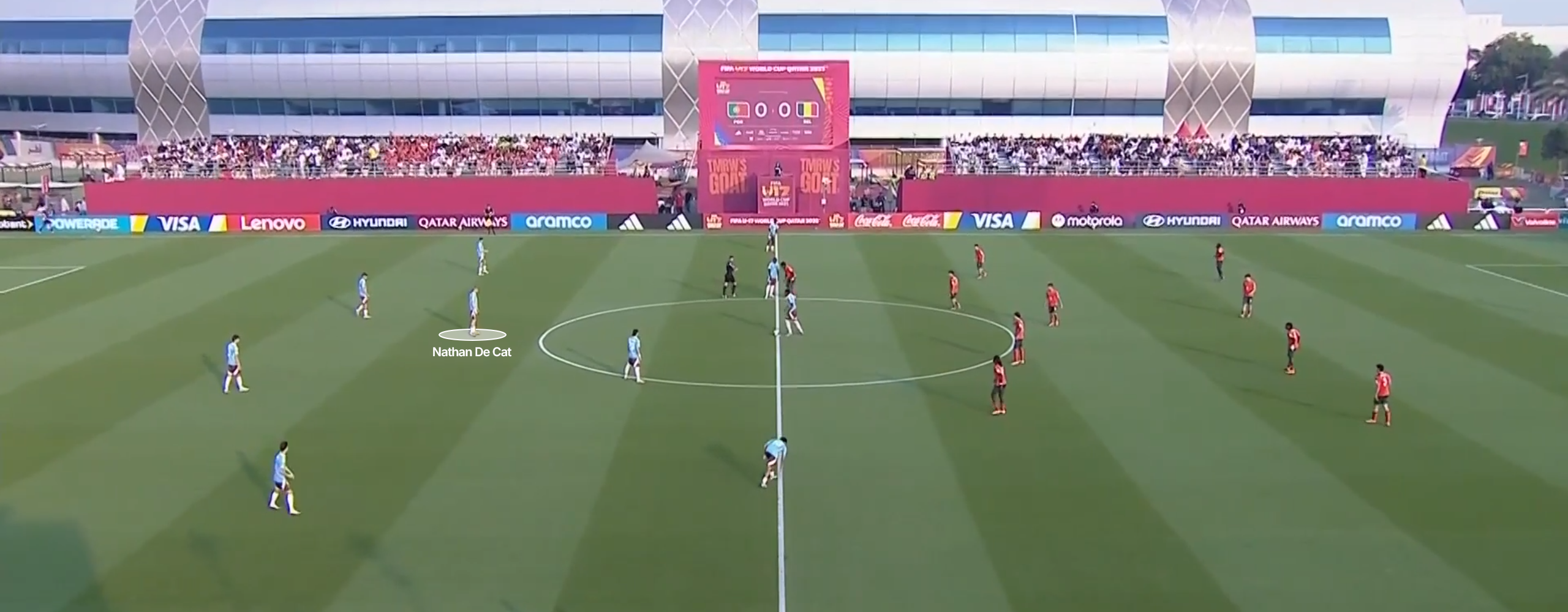 The 17-year-old’s first and only appearance in a hot and humid Qatar was a Round of Sixteen meeting with European champions Portugal. De Cat had played 88 minutes in a big 1-0 win against Club Brugge for RSC Anderlecht’s senior team just three days prior. His status as a perennial top-flight starter – racking up almost 1,400 senior minutes already this season – meant the Brussels club wouldn’t release him until they had to.