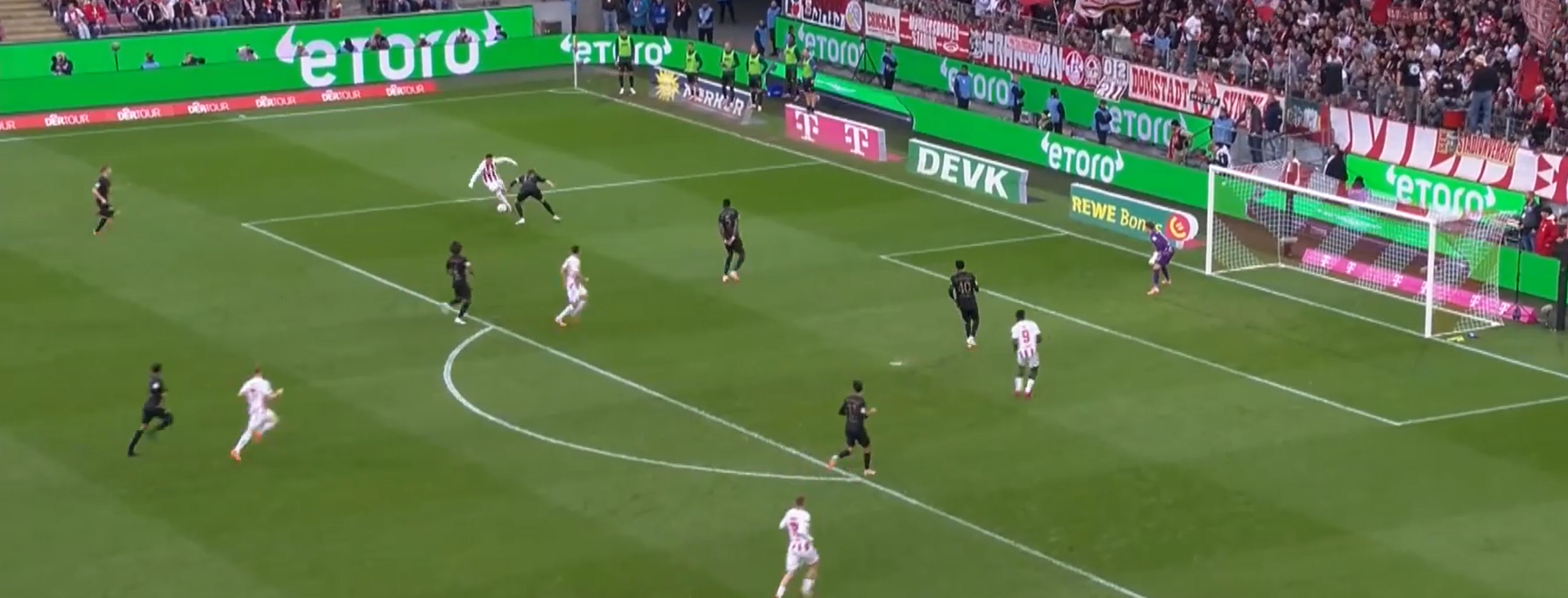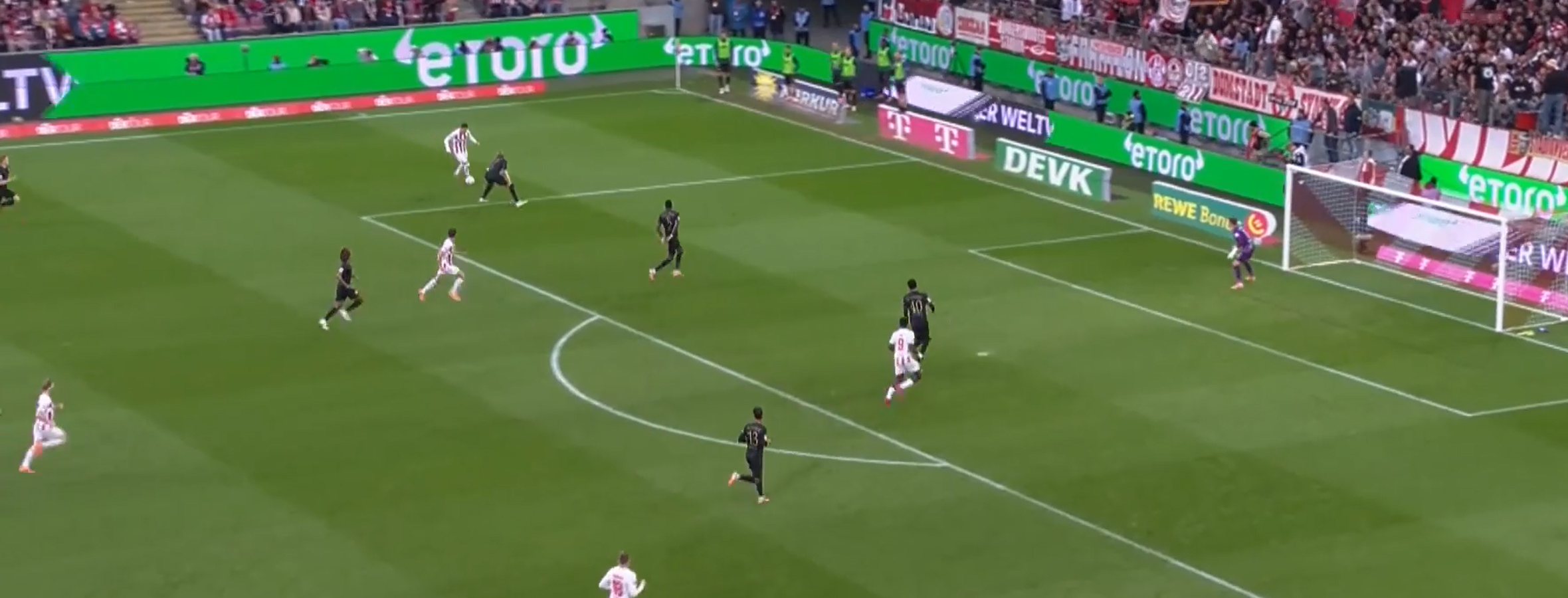 Having created the separation, El Mala cracks a vicious shot that flies through bodies, over the outstretched arm of the goalkeeper, scrapes the underside of the crossbar, and nestles in the net. Effzeh have their equaliser in the 76th minute, and the 19-year-old has his telling impact - again.