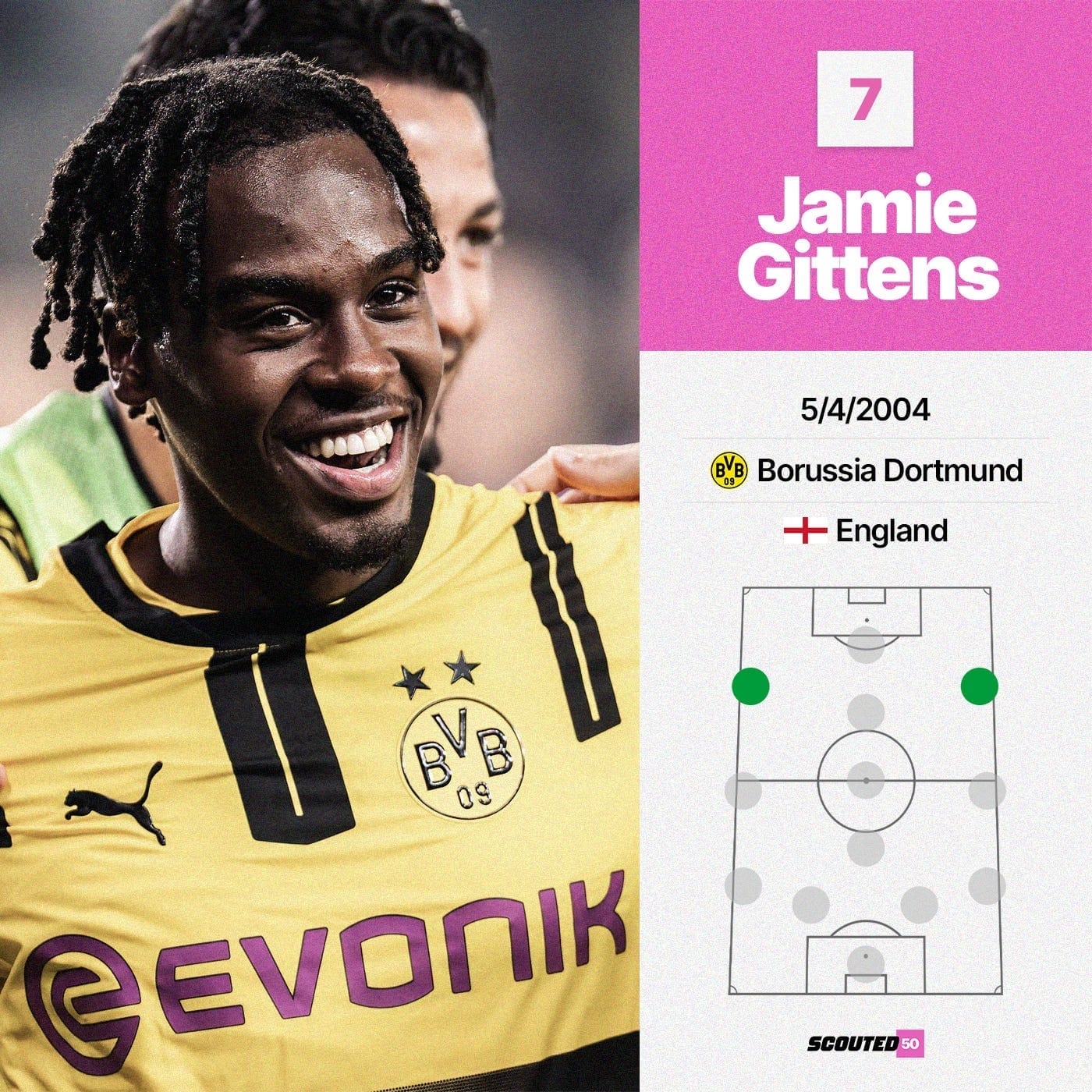 I'm just kidding, we know who Jamie Gittens is - last year he came 7th in SCOUTED50. But the fact Gittens is arriving to essentially replace Sancho at Chelsea is too poetic not to point at.
