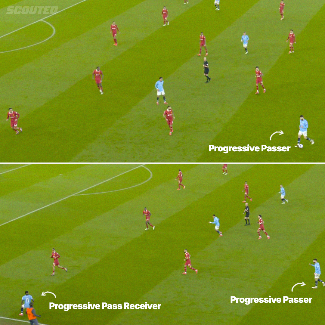 So, how on earth did that only result in four Shot Involvements? The simple answer is that Liverpool have two elite centre-backs that create a near-impenetrable penalty area. This is a major issue when the majority of Doku’s dribbles were completed with both centre-backs set. The Belgian received 22 Progressive Passes on Sunday, at least eight more than any other City player and 14 more than Mohamed Salah, Liverpool’s stat leader. But the scenario that presents each player upon reception of these passes could not be more different.
