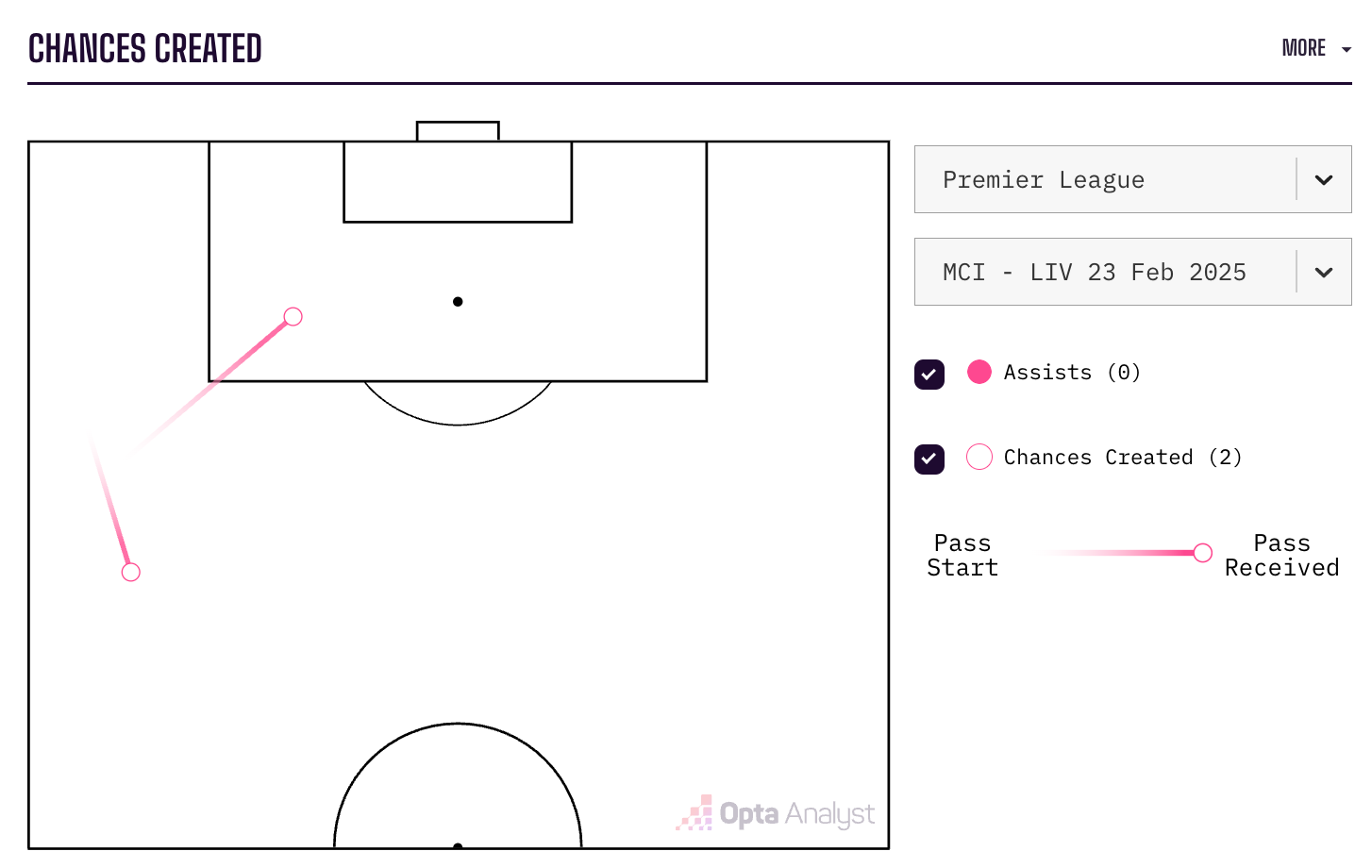 The contrast between these two scenarios is why we will continue to see teams fall out of love with control through possession. Liverpool were completely confident in their ability to defend their box, especially after taking the lead; it is extremely difficult for any player to create meaningful opportunities when the opponent has fortified their area with their preferred block. This is reflected by the fact that the two Key Passes that Doku did register against Liverpool were both outside of the box. The first was a lay-off for an Omar Marmoush potshot. The second, however, was straight from the Salah playbook.