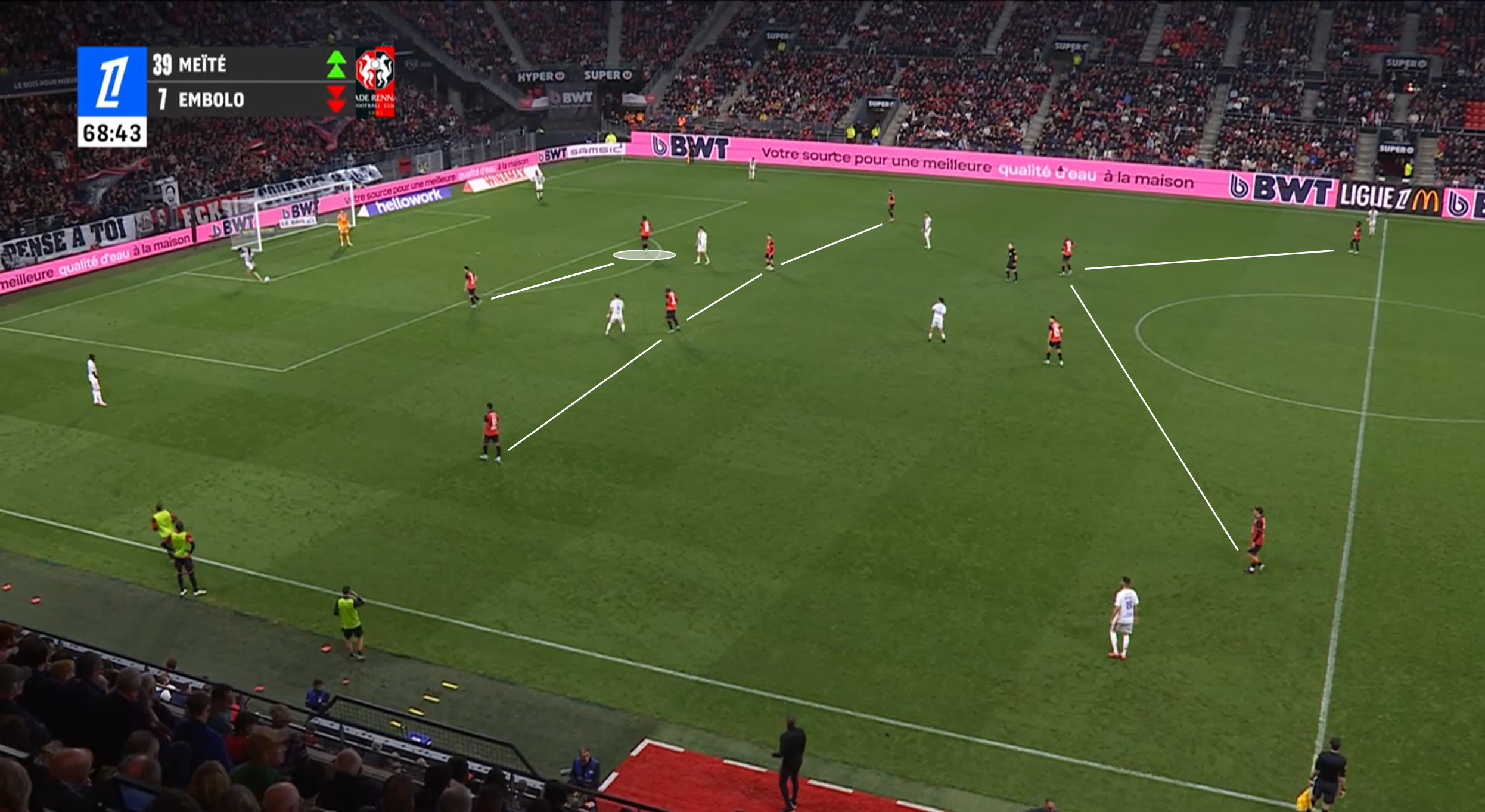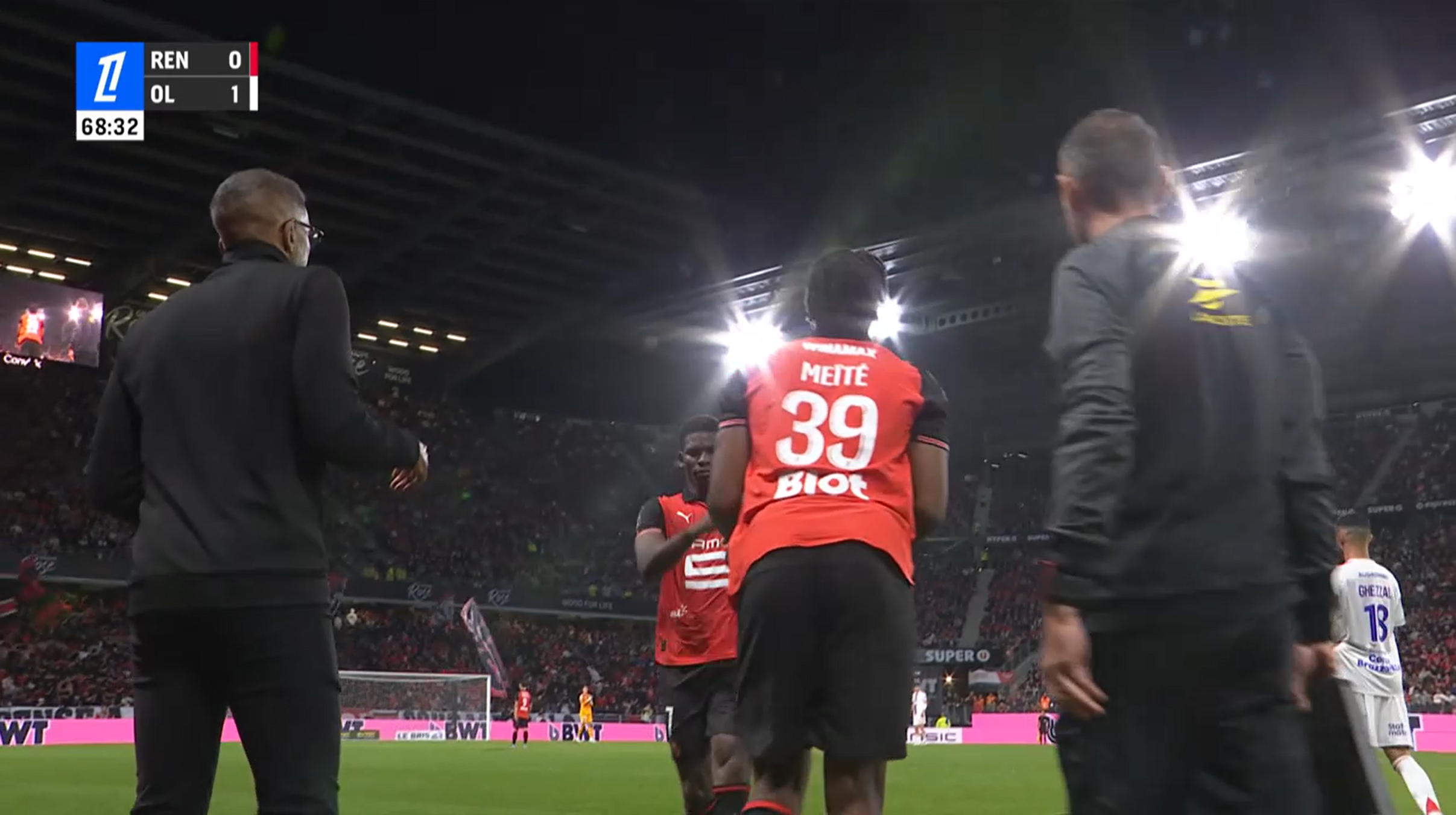 Mohamed Kader Meïté came on in the 69th minute, replacing summer signing Breel Embolo with Rennes chasing an equaliser. Prior to that, the hosts had been banging against a stubborn OL defence—but couldn’t find the breakthrough.