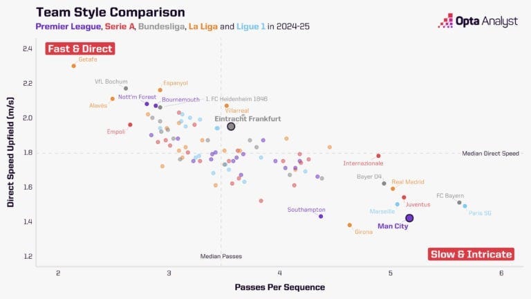 Look at Eintracht Frankfurt there and consider what it means for City to have signed the best-performing player from a club that is successfully implementing this ‘modern’ playstyle. Arsenal’s long-standing interest in Benjamin Šeško shows Mikel Arteta’s awareness is aware of this tactical shift, too.