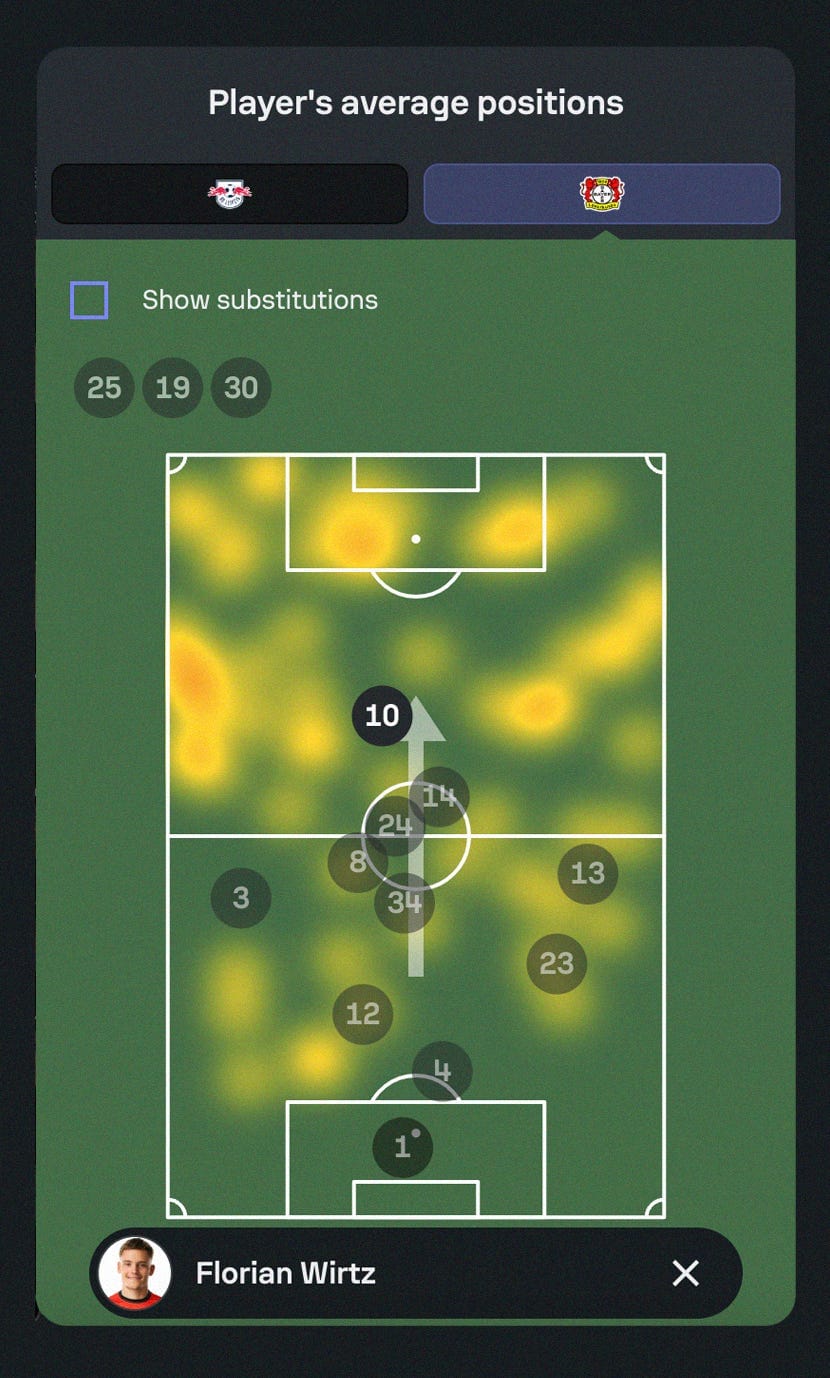 Petar Petrov suggested Second Striker when I asked for help on BlueSky and I liked that most; especially when I looked at the Average Positions from Leverkusen’s most recent match.