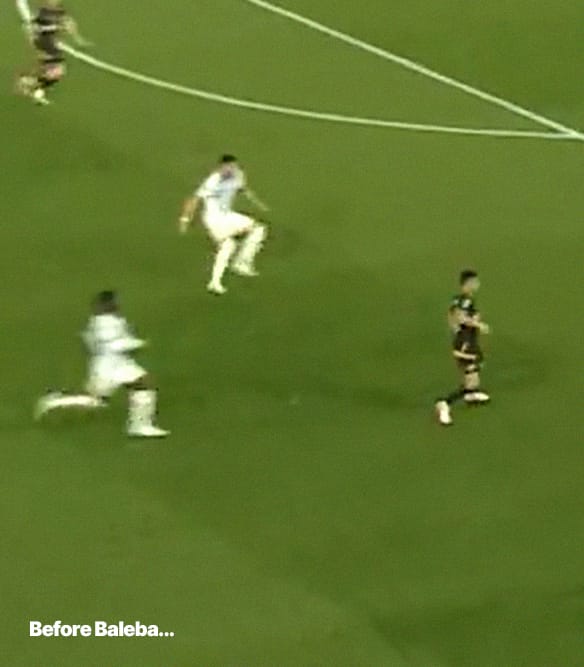 I wasn’t disappointed. Land was neat and tidy as the midfield connector, while Babadi grew into the game to showcase his abilities. This assist — an effortless, outside-of-the-boot chip — was one of his highlights.