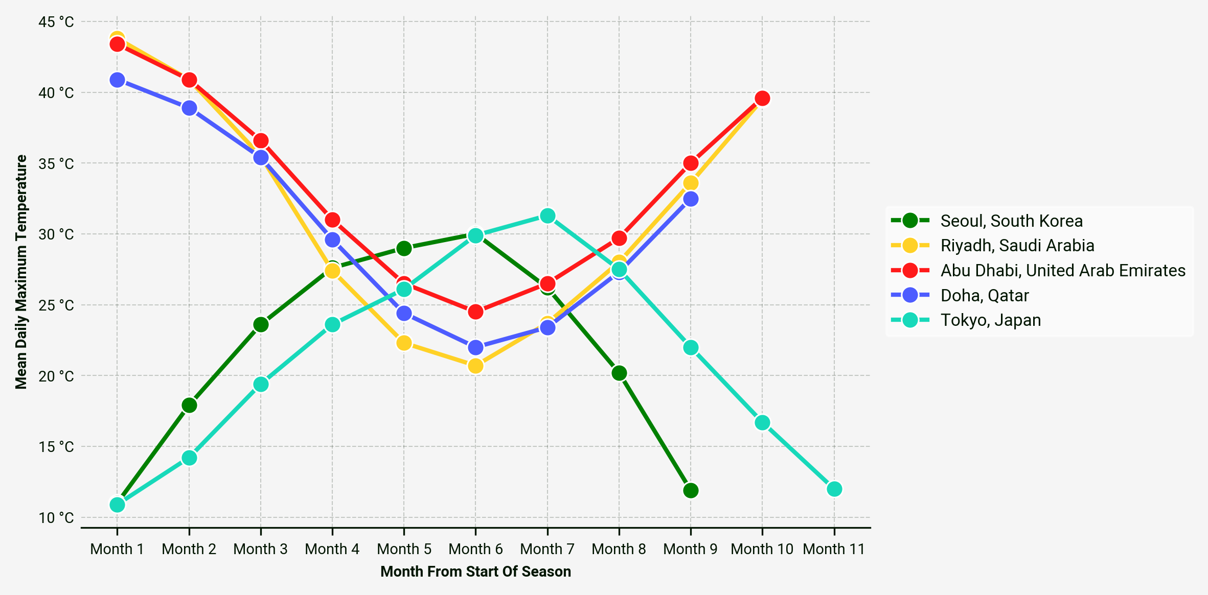 The interesting outlier is the Qatar Stars League, whose clubs play their games during these warmer periods of the season in air conditioned stadiums, before shifting to smaller, traditional home venues.