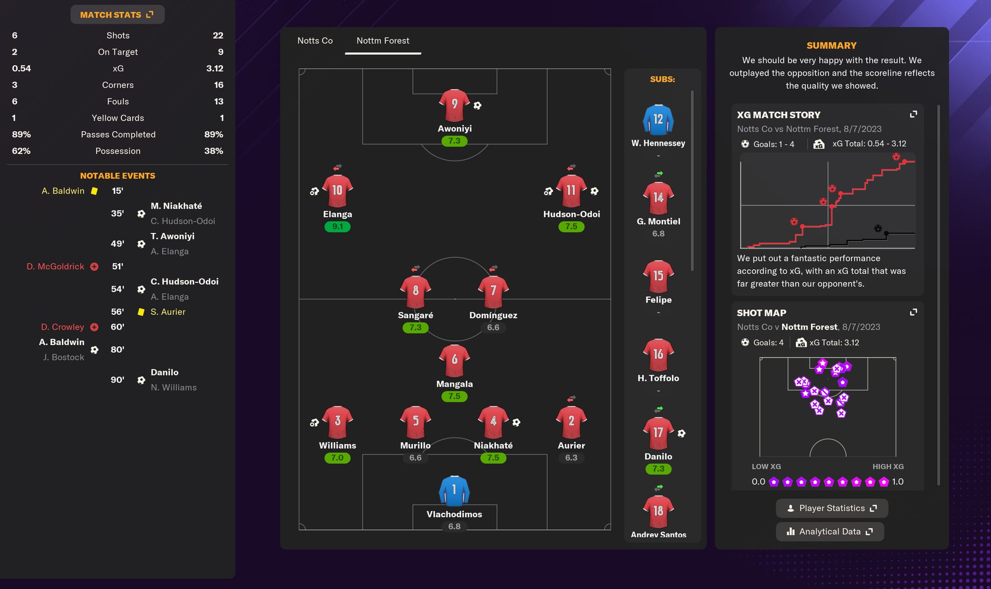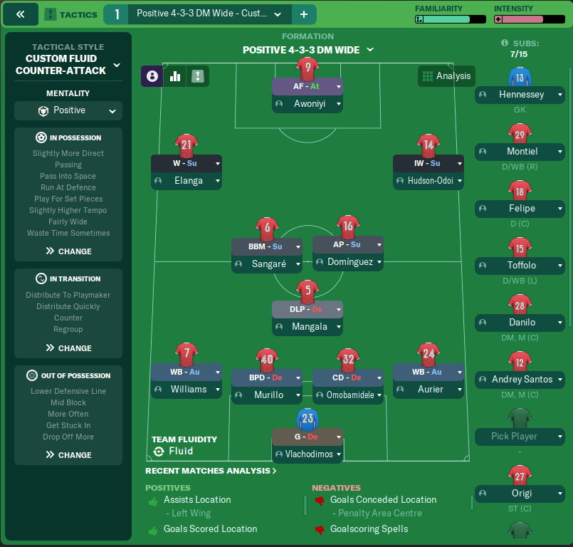 Firstly, I know with Forest’s speed and athleticism up front and out wide, as well as the general strength of the teams I’ll be facing, building a fluid counter-attack will be key. If I can squeeze opponents centrally in possession, have Sangaré and his (to-be-determined) partner gobble up the ball and let MGW do his thing in transition, I’ll be onto a winner. I think.