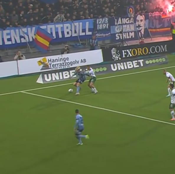 Those are two more examples of his line-splitting passing in a game against his boyhood club, Brommapojkarna. This is what he does on the regular for DIF, and the way he does it suggests he can do it at a much higher level.