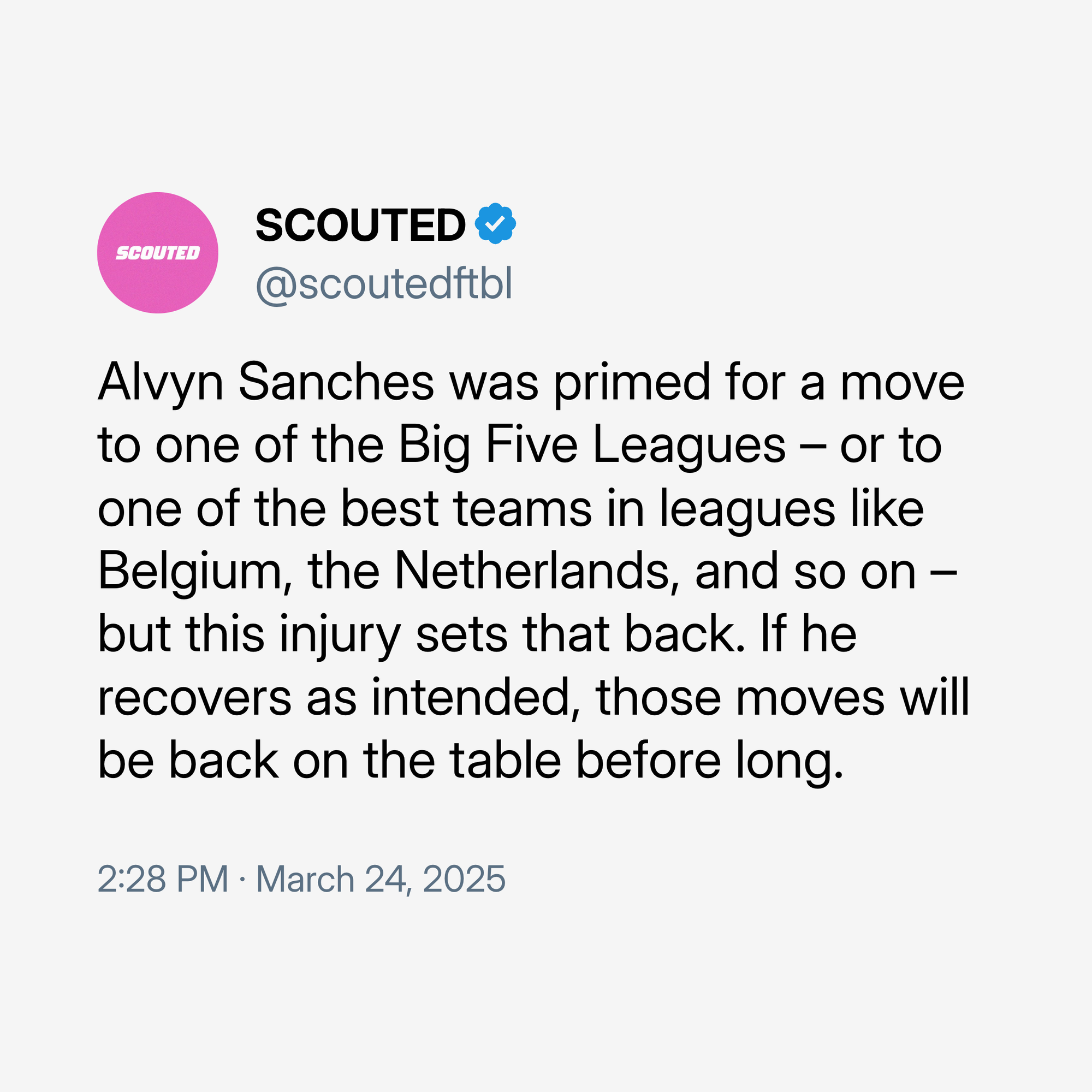 If he recovers and returns to his Player of the Season levels, expect to see him at the 2026 World Cup. Then expect bids at least 5x the €5m fee.