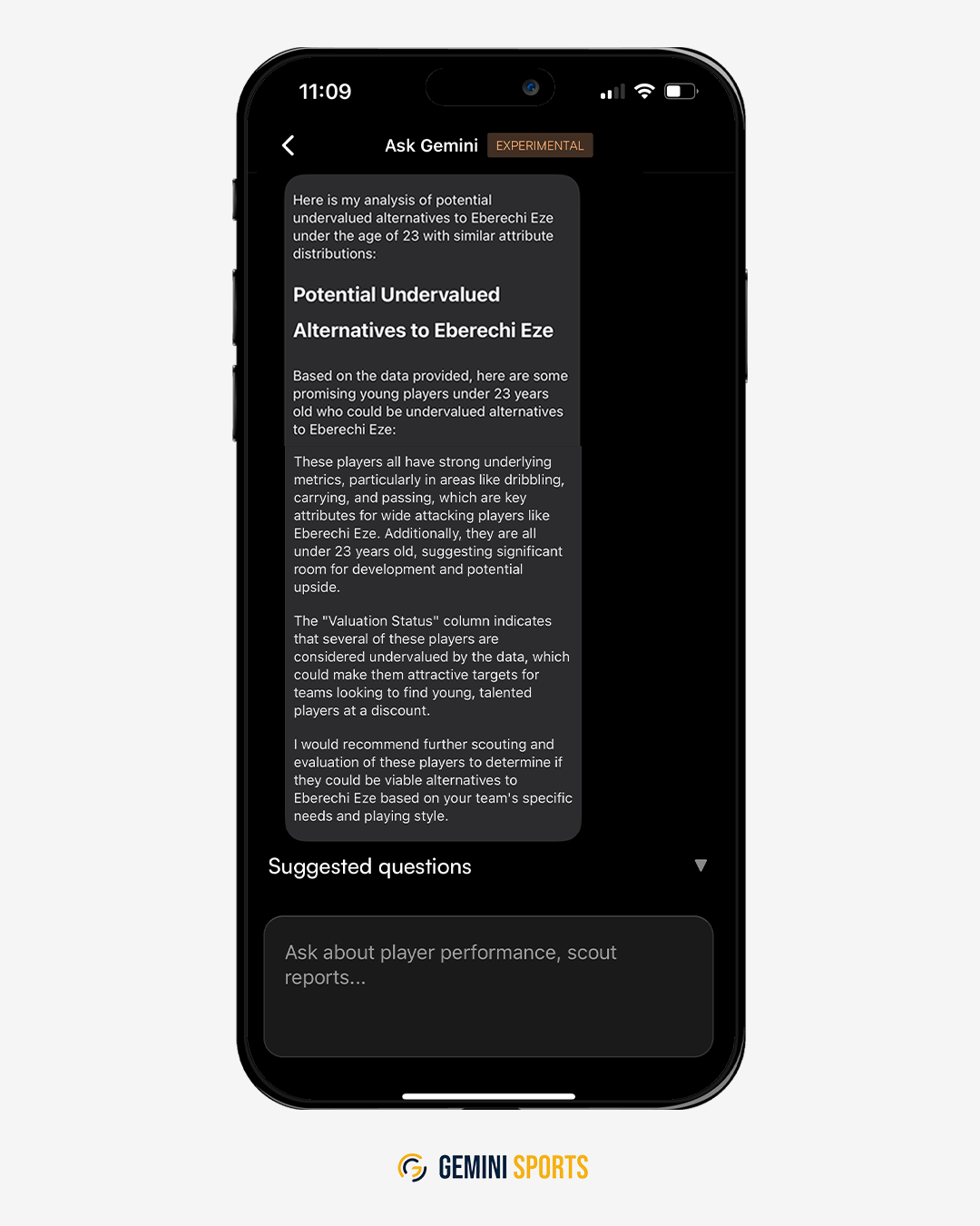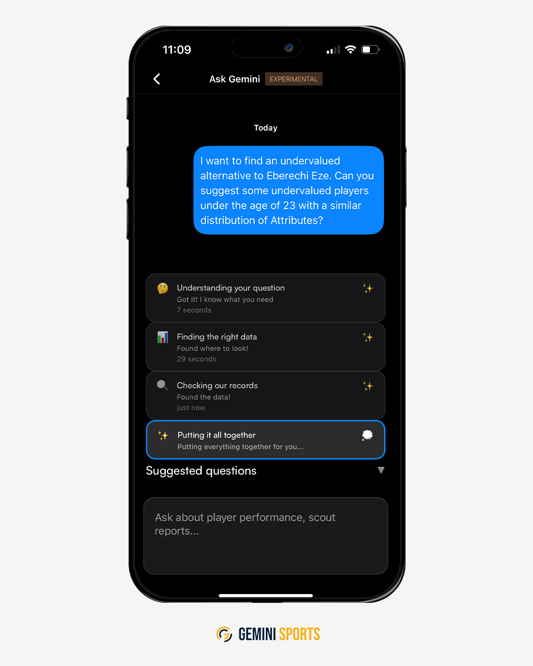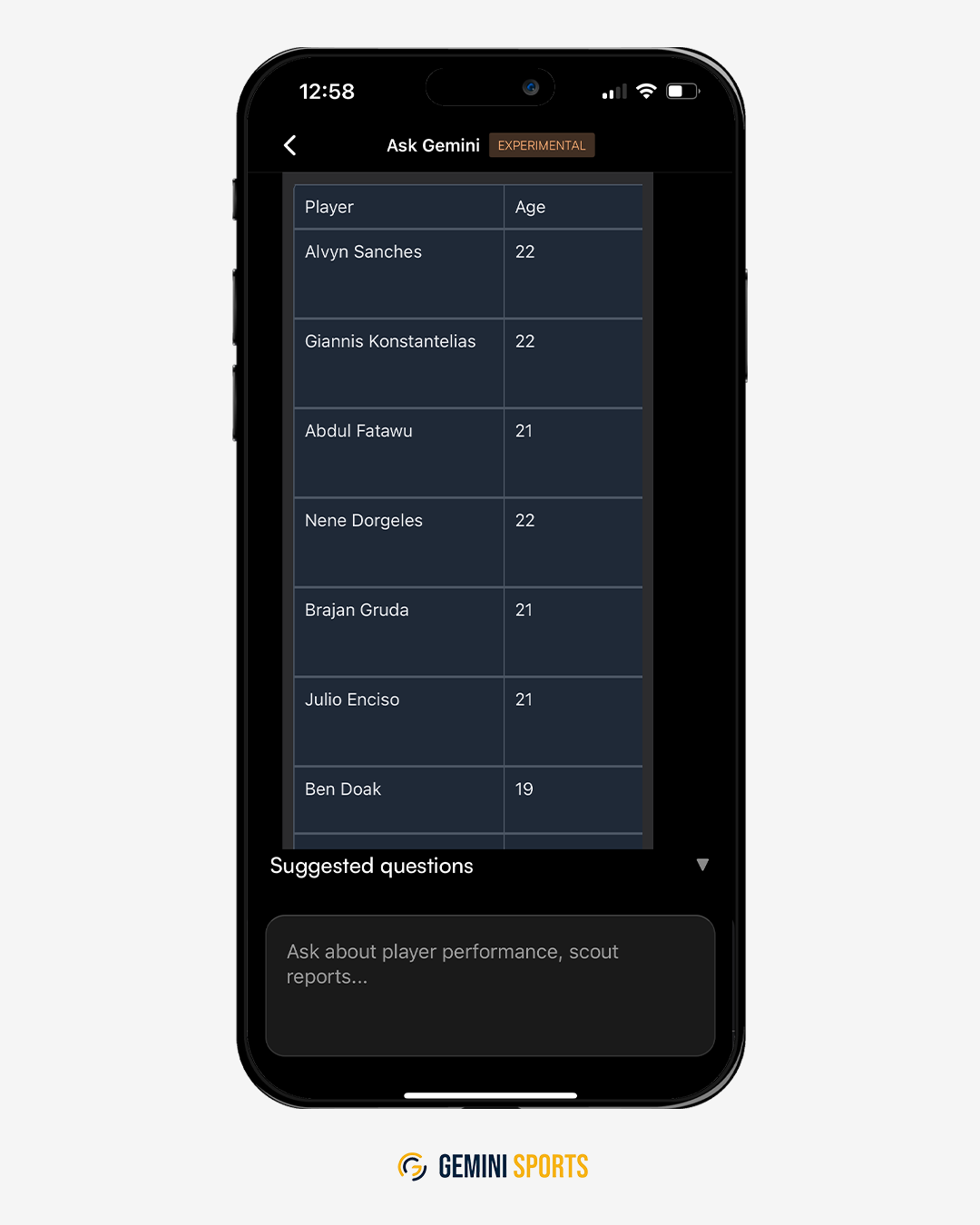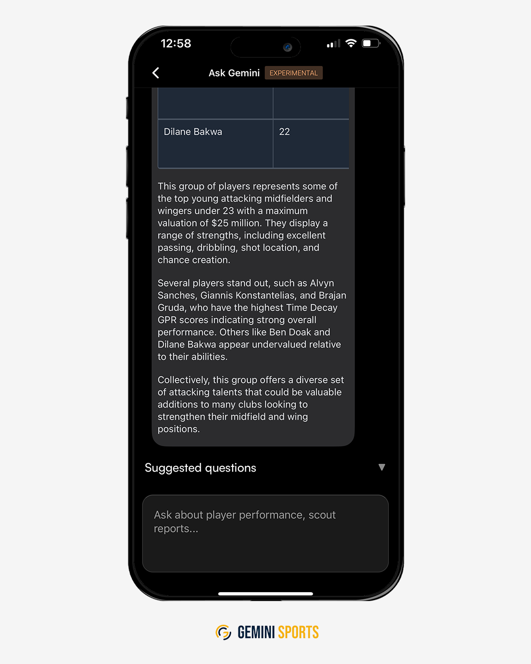 Using Archetypes to lead the AskGemini search shows the value of player profiling. The bulk of the work is done when constructing, interrogating and refining the Archetypes. Making each profile as robust as possible will in turn improve search results when using tools like the Gemini Sports app, enabling clubs to evaluate their own picks as well as discover players that might have slipped through the net.