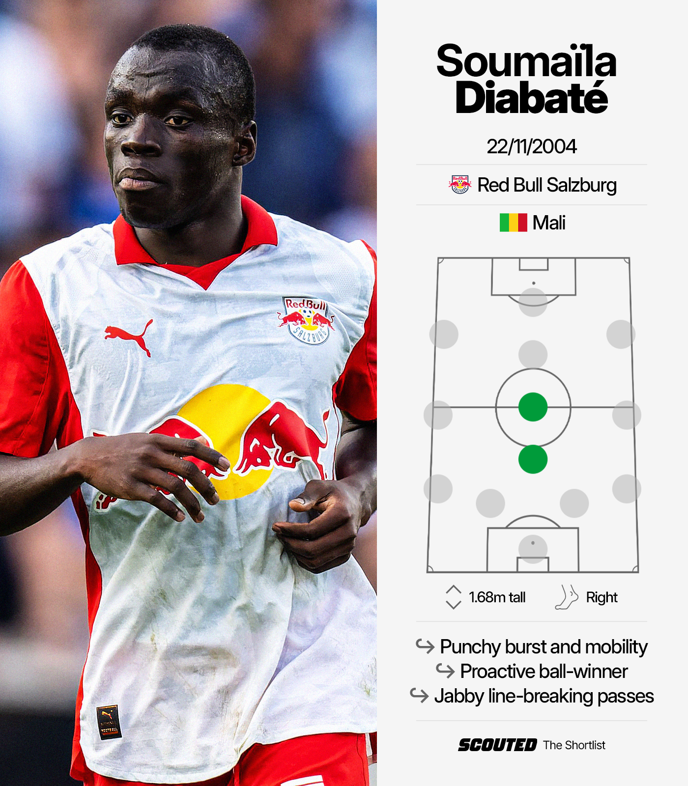 He is like a supercharged version of Mohamed Camara. The 21-year-old is a step more explosive, that bit more physical and a level sharper than his compatriot, who left Salzburg for AS Monaco.