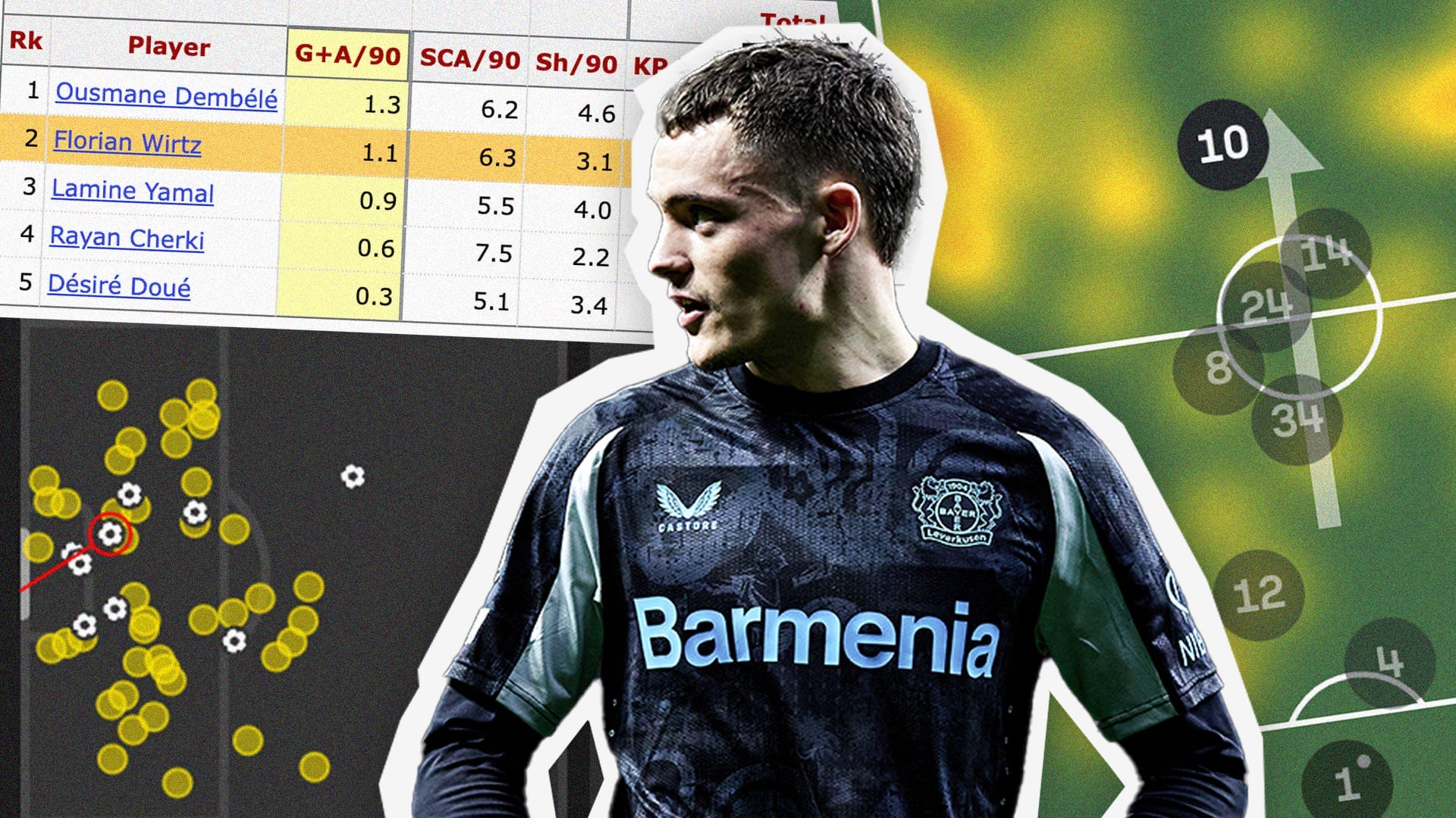 The only players that matched this search were Lazar Samardžić and Ousmane Dembélé. The only players that averaged 6+ Shot-Creating Actions excluding Dead Balls were Kingsley Coman and Samardžić. I simply have to include the Serbian because of those stats.