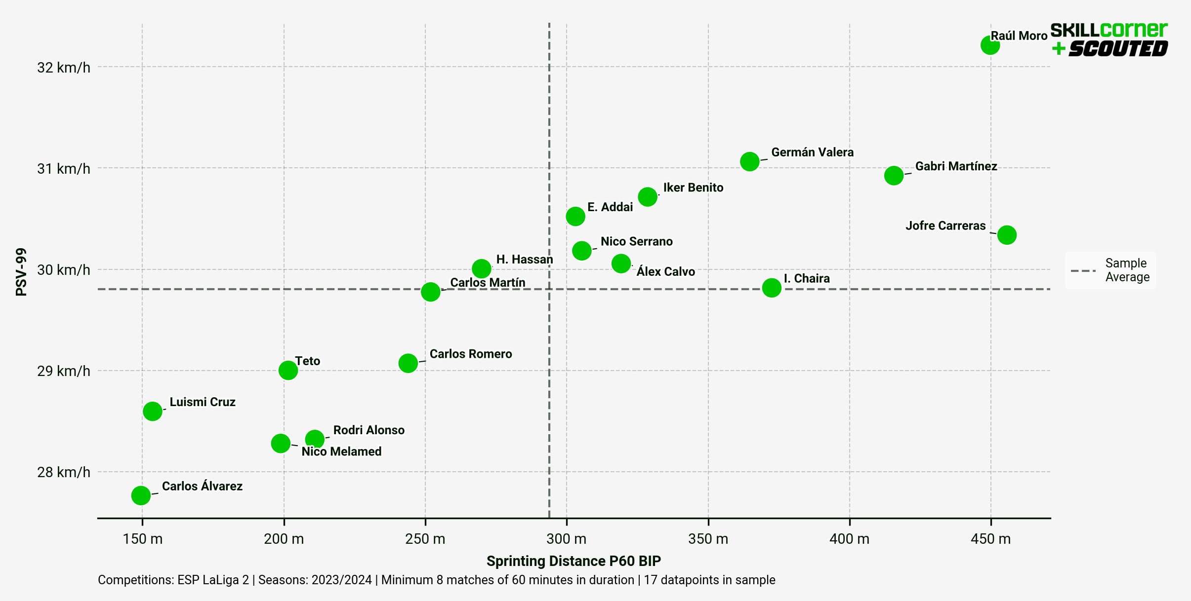 Llew picked out a few in his Scouting the Segunda with SkillCorner piece from January 2024, and I’m going to do a quick sweep for a few more.