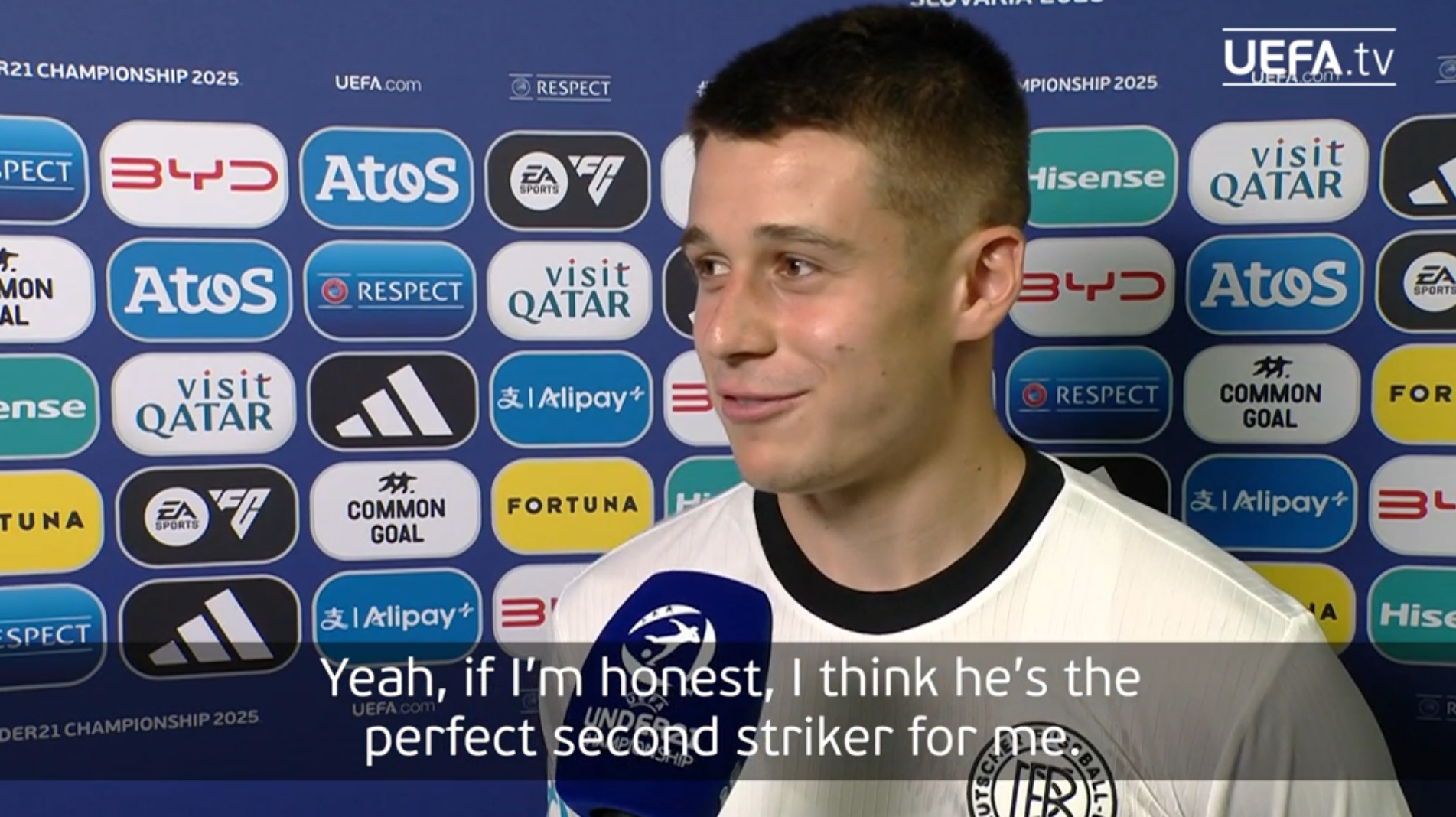 Using FotMob data, 30.2% of Tresoldi’s Touches at the U21 EURO have been inside the opposition box, a higher proportion than Woltemade’s (26.4%) despite the latter’s greater per 90 output (7.91 vs. 9.72). Tresoldi has also won twice as many Aerial Duels as Woltemade (Admittedly, 4 vs. 2 is not a huge amount either way). If you were seeing Nic and Nick line up for the first time, you would paint a picture that is the complete opposite to reality. This strike partnership is an optical illusion. But is is extremely effective.
