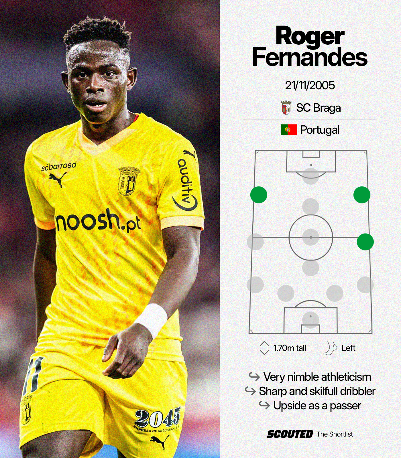 Still young, another season in Portugal would serve him well. Braga have just appointed Carlos Vicens, a Pep Guardiola assistant for the past four years, as their new head coach—he could unlock Roger’s next level. But don’t be surprised if clubs come calling this summer, trying to get ahead of his breakout season.